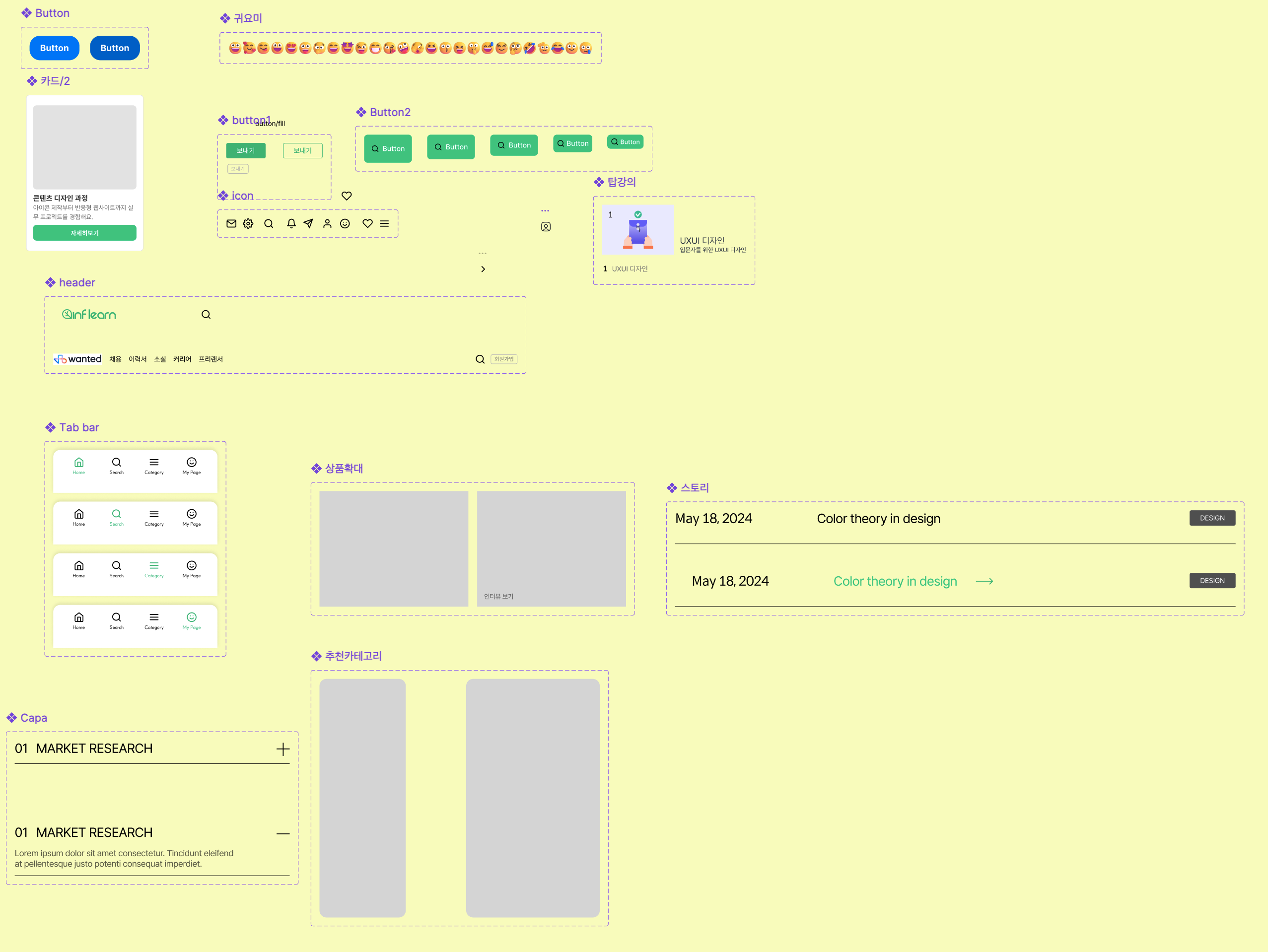 본 후기는 본 후기는 [유데미x스나이퍼팩토리] UI/UX 포트폴리오 과정 2기(B-log) 리뷰로 작성 되었습니다. 컴포넌트컴포넌트는 아이콘 버튼 레이아웃 등 많이 사용하는 오브젝트를 저장해두고 바