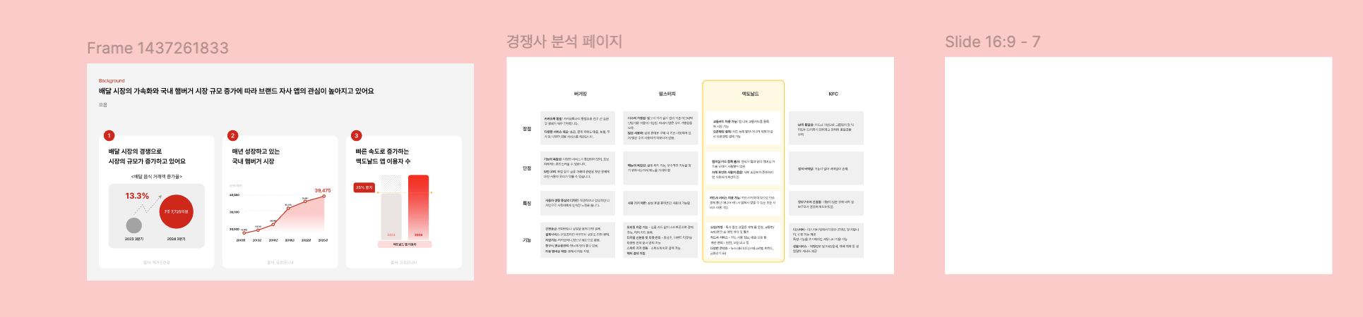 그 후 데스크 리서치와 경쟁사 앱을 분석하고 브랜드 포지셔닝까지 하면서 발표장표도 같이 만들게 되었다.