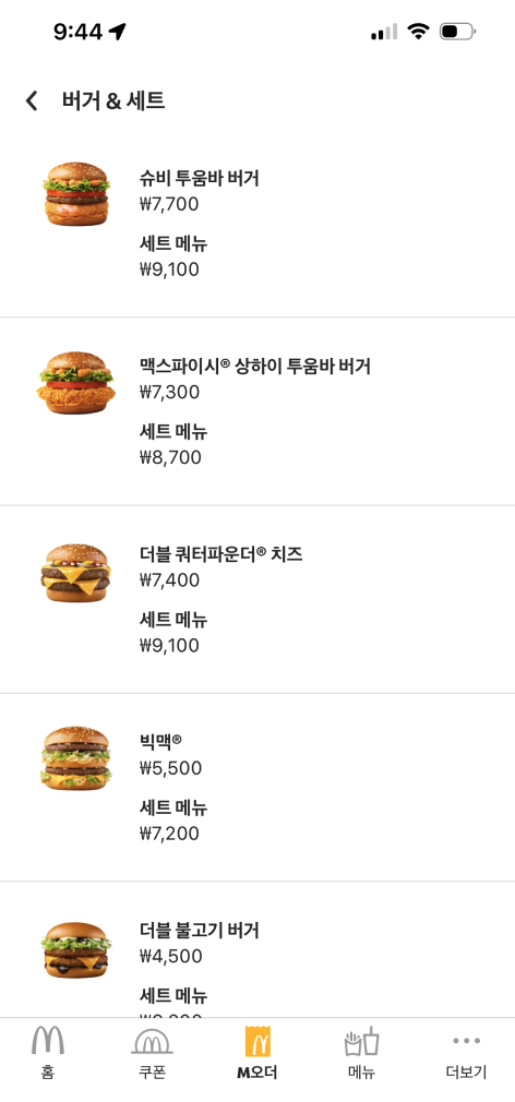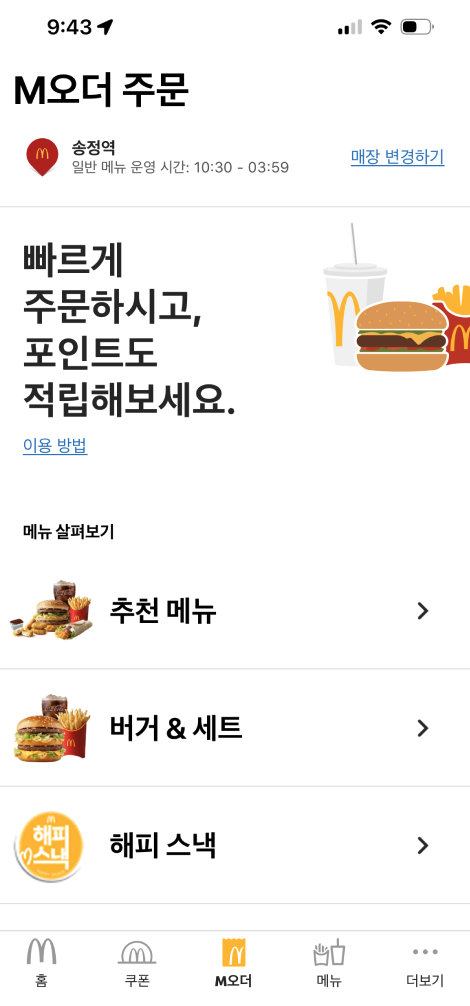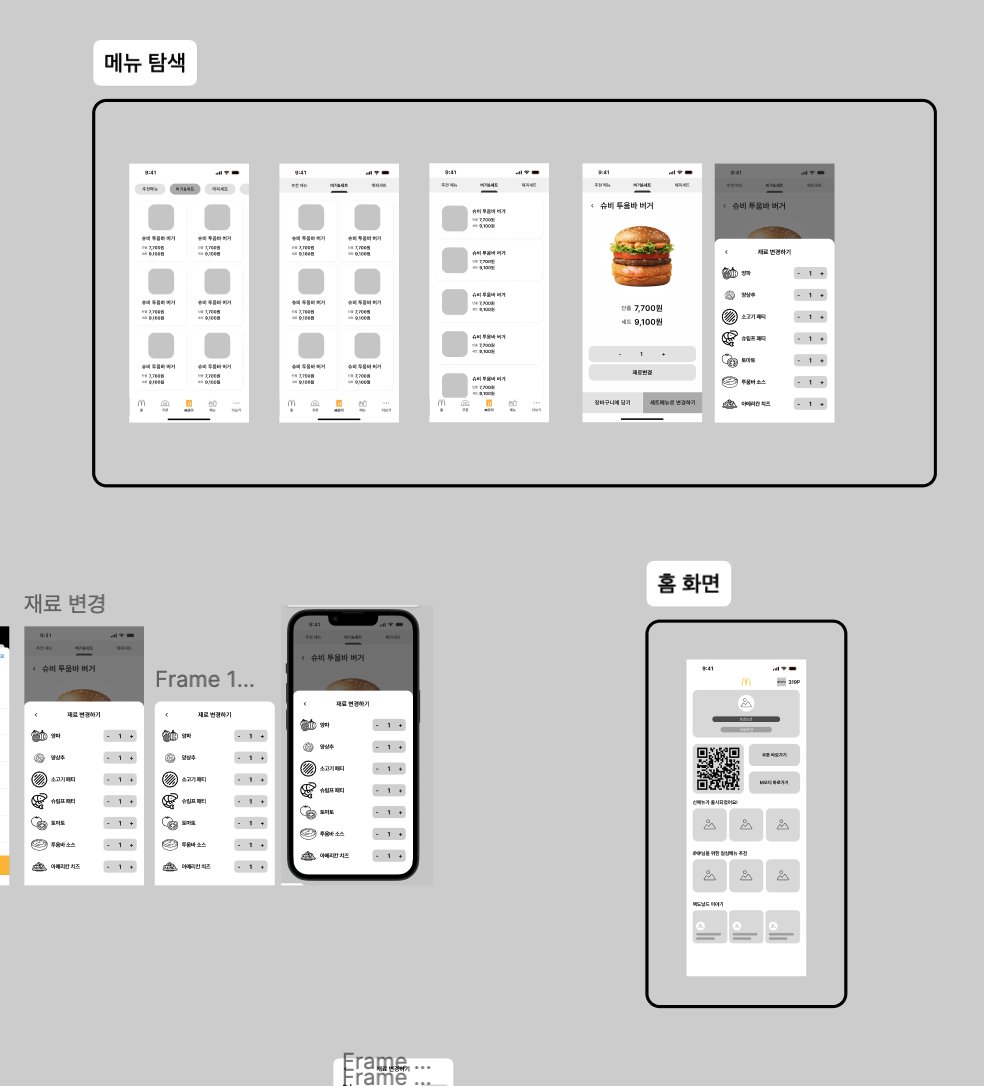 기존 메인 홈과 메뉴탐색 및 구매 페이지다